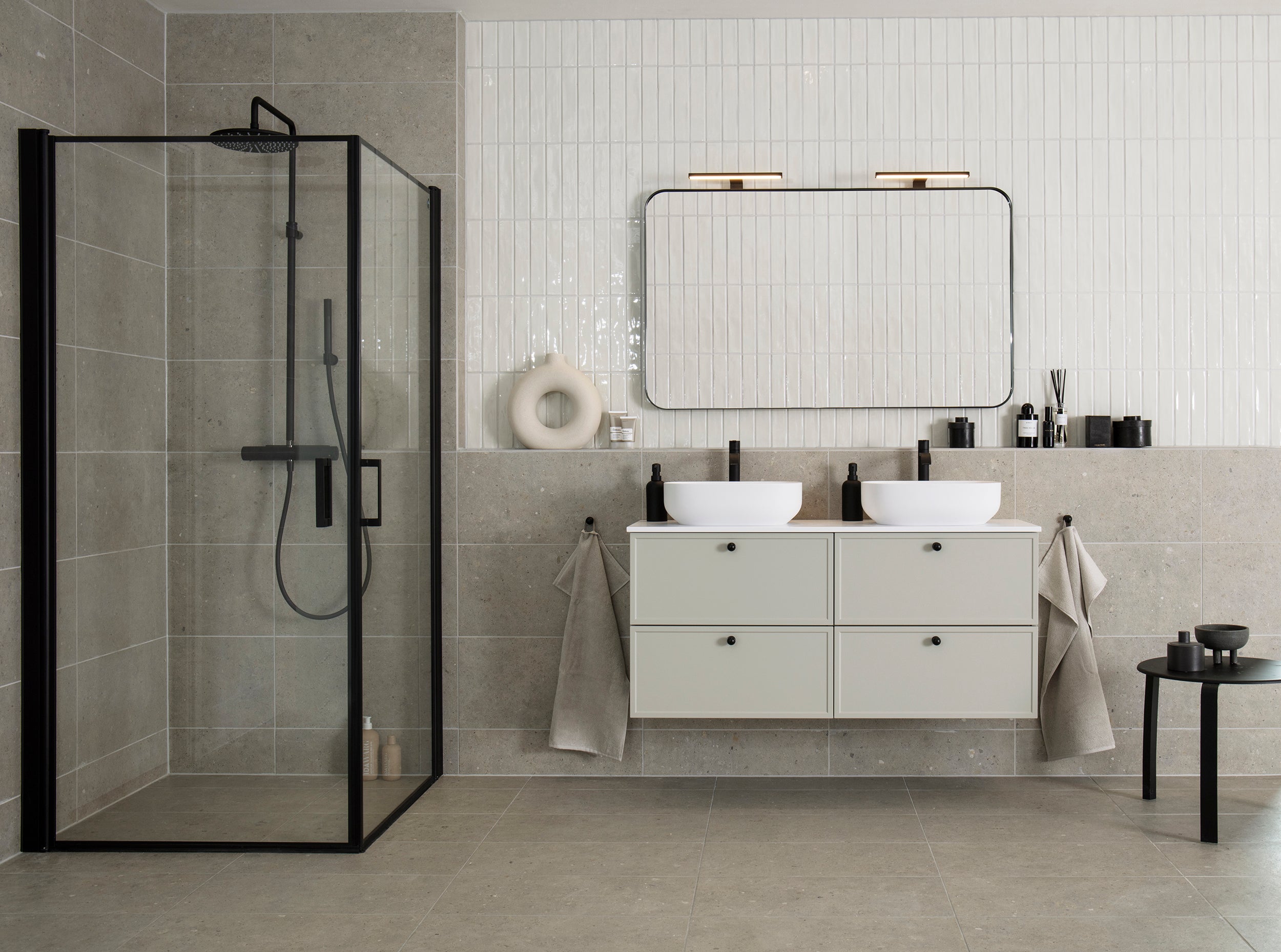 Hos Färgvaruhuset.se hittar du ett brett sortiment av granitkeramik för både golv och väggar. Till skillnad från natursten är granitkeramik ett keramiskt, icke-poröst material, gjort av finmalda mineraler och porslinslera. Materialet torrpressas under högt tryck och bränns i mycket höga temperaturer. Resultatet är en tålig, frostsäker yta med mycket låg vattenabsorption. Till skillnad från natursten kräver granitkeramik minimalt med underhåll men ger samma exklusiva känsla och fungerar lika bra i badrum och kök som i hall eller tvättstuga.